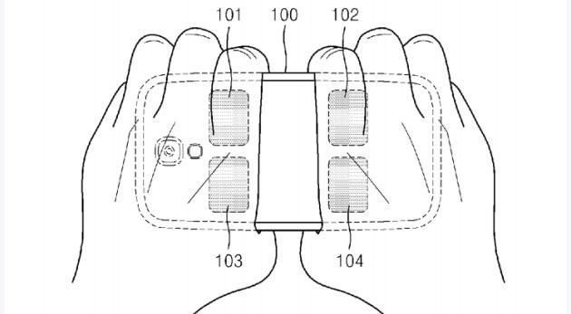 Le illustrazioni allegate al brevetto mostrano un utente che tiene in mano il telefono con entrambe le mani per ottenere una lettura da questi sensori (guardate la foto in allegato).