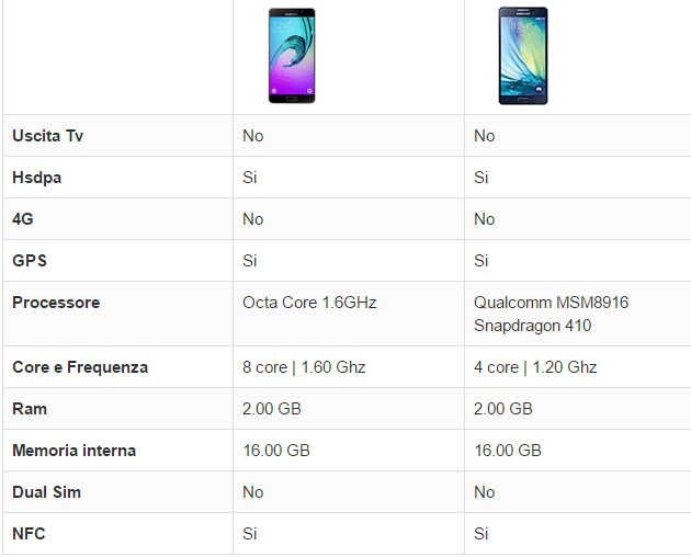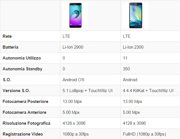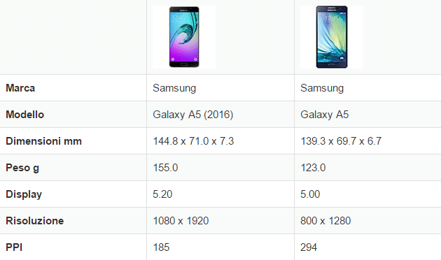 CONFRONTO specifiche Samsung Galaxy A5 vs Galaxy A5 (2016)