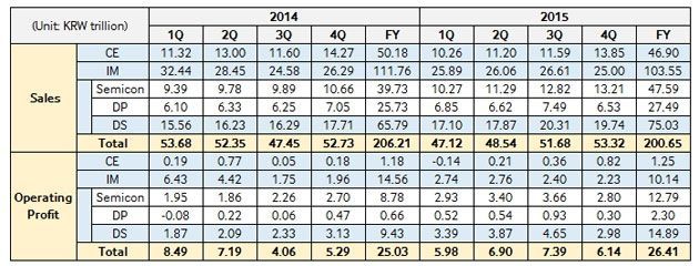 Per il quarto trimestre del 2015, la divisione mobile di Samsung ha fatturato 21 miliardi di dollari , in calo del 4,9 per cento in un anno, e del 6% su base trimestrale. I profitti operativi sono pari a 1.85 miliardi di dollari, in crescita del 13,8% su base annuale, ma in calo del 7% rispetto al trimestre precedente. Per tutto il 2015, la divisione mobile di Samsung ha registrato 87 miliardi di dollari di vendite con un utile operativo di 8.5 miliardi di dollari. Questo è un calo del 7,3% delle vendite rispetto al 2014, e un calo del 30% dei profitti.