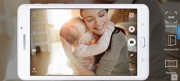 Altre specifiche includono una fotocamera posteriore da 5 megapixel, una fotocamera da 2 megapixel frontale, 8GB di memoria interna espandibile, e una batteria da 4000 mAh. Il sistema operativo è Android ma non nell’ultima iterazione disponibile, si trova infatti la 5.1 Lollipop con inclusa la suite Kids Mode di Samsung.