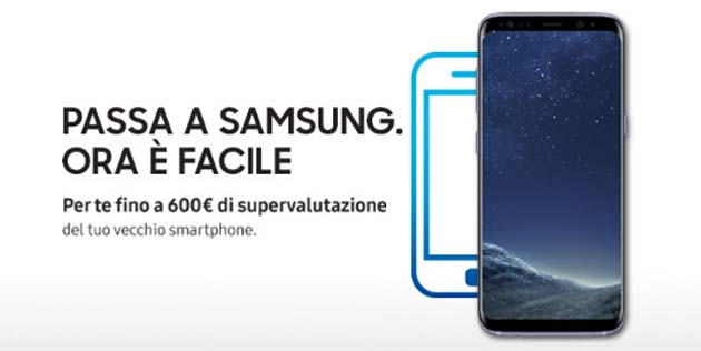 Per l’acquisto di un nuovo Galaxy S8, Galaxy S8+ o Galaxy Note8 Samsung supervaluta il vecchio smartphone usato fino a 600 euro. La promozione è valida dal 5 settembre 2017 al 15 novembre 2017 (termine prorogato dall’8 ottobre 2017) presso i punti vendita aderenti e gli estore indicati nei termini e condizioni. A seguire andiamo a scoprire i criteri di valutazione, tutti i termini e le limitazioni per poter dare a Samsung il proprio smartphone attuale e avere un rimborso fino a 600 euro in seguito l’acquisto di un nuovo Galaxy S8, Galaxy S8+ o Galaxy Note8.