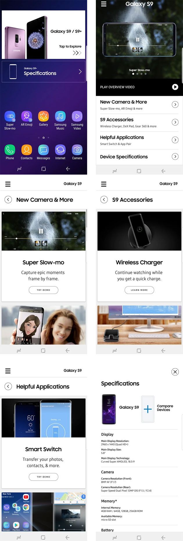 L’applicazione non trasforma il proprio smartphone esistente in un Galaxy S9 o Galaxy S9+, logicamente, ma è stata progettata per far provare alcune funzionalità di Galaxy S9/S9+ virtualmente sul proprio device. Tutte le informazioni piu’ importanti che magari ancora non si conoscono dei nuovi Galaxy S9 all’interno di questa app si possono trovare, con tanto di video dimostrativi dettagliati. Fotocamera, accessori, applicazioni utili e specifiche dei nuovi Galaxy S9 sono tra le sezioni che si possono trovare all’interno dell’app.