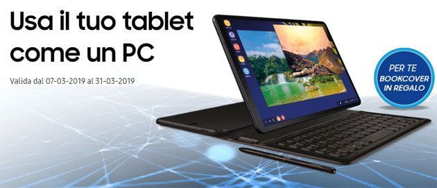 Samsung Italia ripropone la promozione “TAB S4 Keyboard Cover” che consente, a chi acquista un Galaxy Tab S4 tra il 7 e il 31 marzo 2019, di ricevere una Bookcover Keyboard direttamente a casa, gratis. La promozione era già stata proposta in occasione del debutto in Italia del Galaxy Tab S4, tra il 24 agosto e il 2 settembre 2018, e poi ancora trail 29 ottobre e il 2 dicembre 2018.