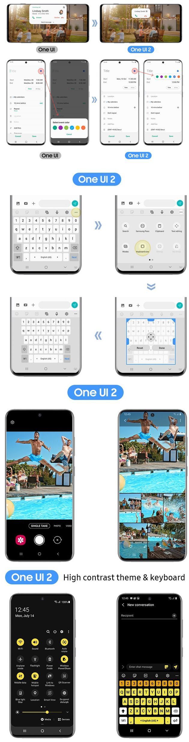 In passato i cellulari avevano pulsanti fisici e un numero limitato di funzionalità, mentre oggi gli smartphone offrono una vasta gamma di funzioni alle quali accediamo interagendo attraverso i display touch, a volte anche più di uno su uno stesso device. Tuttavia, l’utilizzo dello stesso componente che funge da supporto di visualizzazione del dispositivo come strumento di input principale può talvolta presentare difficoltà per gli utenti. È qui che entra in gioco l’interfaccia utente (user interface, UI) del dispositivo, con l’esperienza degli utenti che interagiscono con essa definita esperienza utente (user experience, UX). Nel 2018, Samsung ha introdotto una versione migliorata dell’interfaccia utente standard nei suoi dispositivi, chiamandola "One UI" e introdotta al fianco di Android 9. Con la distribuzione di Android 10, iniziata a dicembre 2019 per la serie Galaxy S10, è iniziata la distribuzione della UI 2.0 di Samsung.