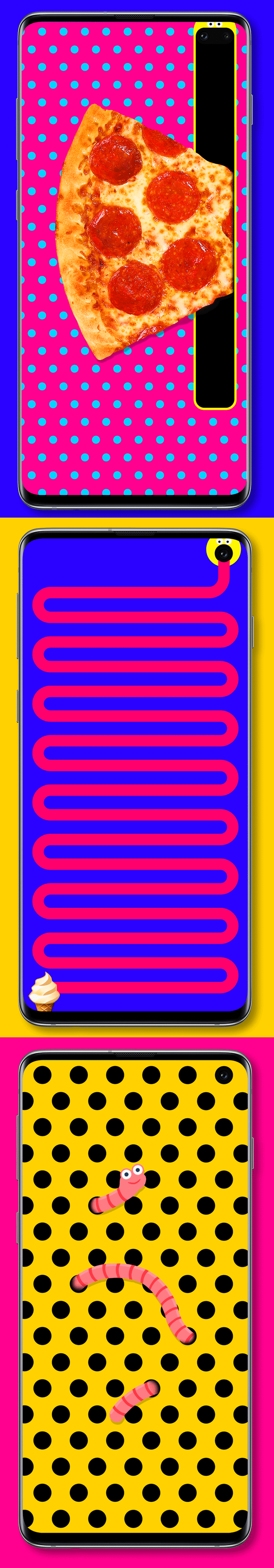 Samsung in collaborazione con l’Art Director Pablo Rochat ha rilasciato una serie di tre sfondi personalizzati per la linea di smartphone Galaxy S10, che si adattano perfettamente al design della fotocamera frontale di questi telefoni.