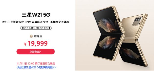 Samsung W21 5G viene venduto in Cina solo nella colorazione Oro, è disponibile al prezzo di 19,999 CNY (equivalente a circa 2.557 euro); non è previsto l’arrivo in Europa di questo device.