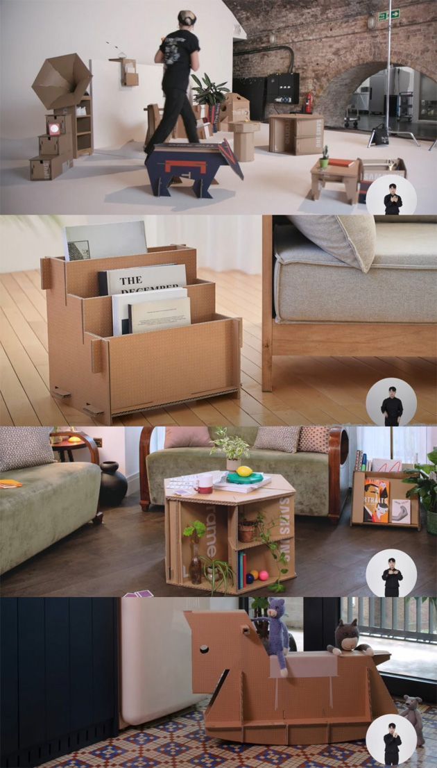 Esempi di riutilizzo degli imballaggi in cartone dei televisori Samsung