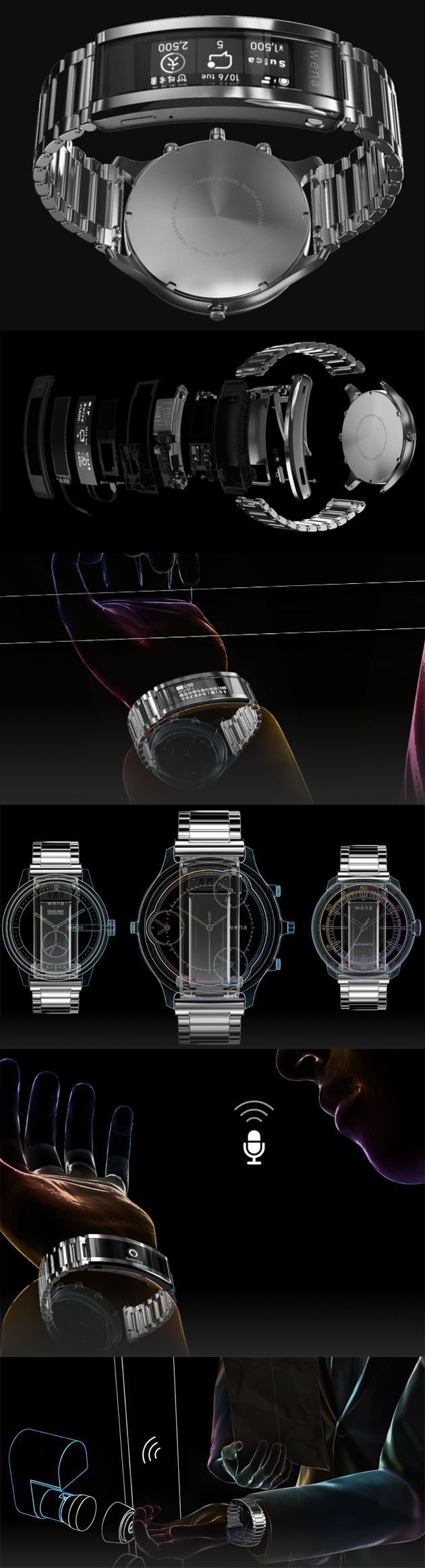 Sony col progetto Wena si è impegnata nel convincere i consumatori a modernizzare un orologio elegante che già possiedono, semplicemente cambiando il cinturino, invece di dover acquistare un nuovo smartwatch completo. Infatti, la parte tecnologica dell’orologio si trova nel cinturino, fornito con un piccolo display OLED in bianco e nero e tutti i sensori necessari per poter tracciare l’attività e la salute. Il cinturino intelligente è abbinabile al quadrante di qualsiasi orologio grazie alla sua cinghia universale da 22mm. Funziona cosi: al posto del cinturino dell’orologio che indossiamo tutti i giorni si attacca questo Wena 3, con il display di quest’ultimo che si va praticamente a posizionare nella parte interna/inferiore del polso, mentre nella parte esterna/superiore resta visibile il quadrante dell’orologio di tutti i giorni. Vediamo alcuni esempi di questo concetto qui sotto.
