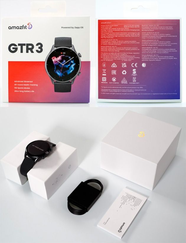 GTR 3 è uno smartwatch costruito con un corpo in lega di alluminio utilizzato generalmente in ambito aeronautico perché leggero, con corona girevole che si integra con lo schermo circolare in vetro per dare un maggiore senso di immersione. Il display è AMOLED HD da 1,39 pollici mentre la batteria ha capacità di 450mAh con autonomia stimata dal produttore a fino 21 giorni.