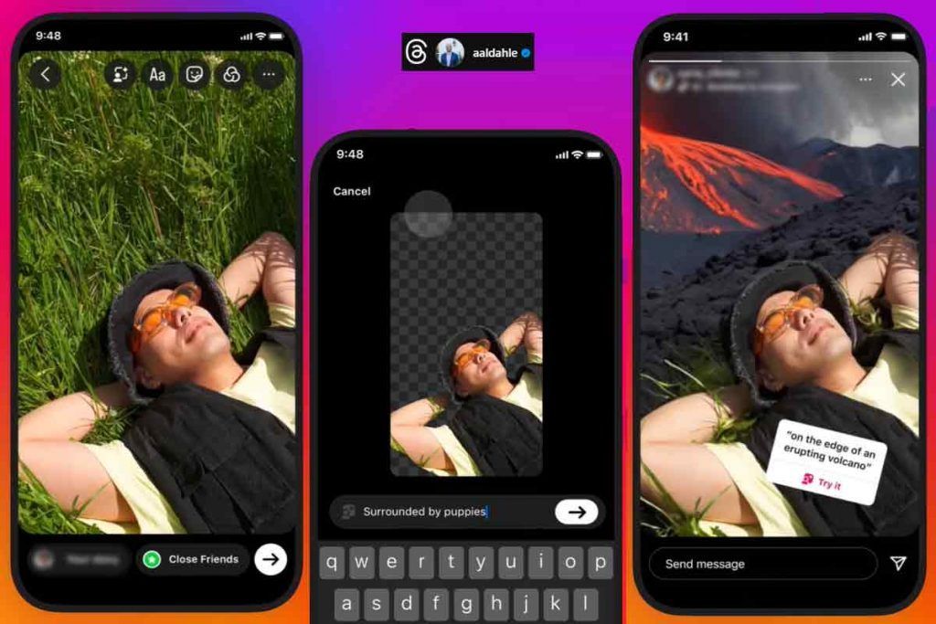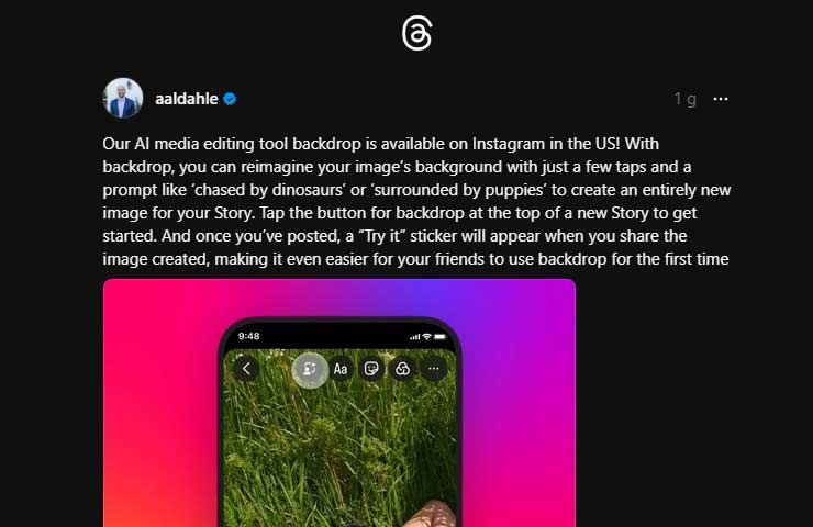 Le immagini condivise su Instagram con lo sfondo cambiato e generato dall’IA sono etichettate dal tag ‘Provalo’. Questo, come ha spiegato Al-Dahle, serve per invitare chi vedrà la storia a provare questa nuova funzionalità.
