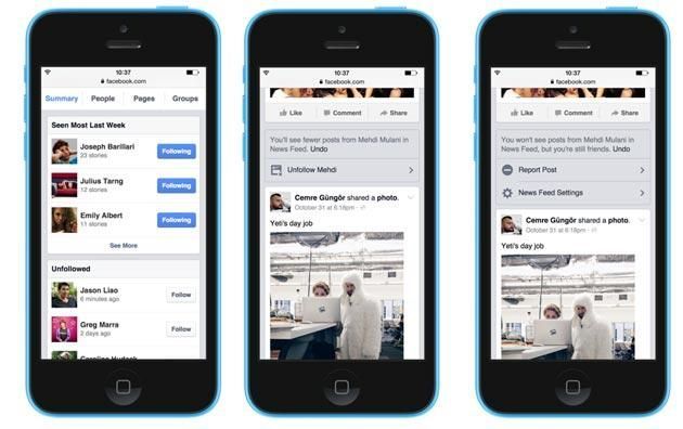Per quanto concerne l’opzione per smettere di seguire in modo rapido o ri-seguire le persone, pagine e gruppi, Facebook scrive che "Impostazioni News Feed ora mostra un elenco delle persone migliori, pagine e gruppi che hai visto in News Feed durante la precedente settimana. È possibile scegliere di ordinare i messaggi da persone, Pagine o Gruppi, o consultare una panoramica generale. Basta mettere ‘Non seguire’ un qualche amico, pagina o un gruppo se non si desidera visualizzare i loro post nel vostro News Feed. È anche possibile vedere chi hai smesso di seguire in passato e che puoi scegliere di ri-seguire."