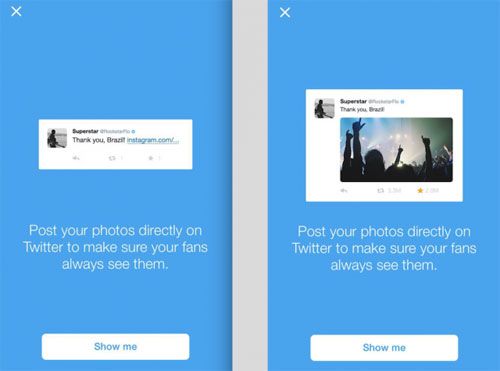 Twitter invita i suoi utenti più popolari come media, personaggi famosi del mondo dello spettacolo, dello sport e della musica di postare foto direttamente su Twitter invece di condividerle attraverso Instagram. Secondo quanto rivelato dal sito Mashable, Twitter sta inviando a questi utenti ‘vip’ un messaggio con la richiesta di cui sopra.