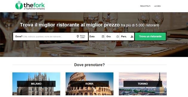 Debutta in Italia TheFork, la piattaforma internazionale di TripAdvisor che consente di prenotare online e in mobilità ristoranti. Il servizio prima di oggi era offerto già in alcuni paesi d'Europa, come Francia, Belgio, Svizzera e in Spagna. TheFork è disponibile via web o app mobile per iOS e Android.