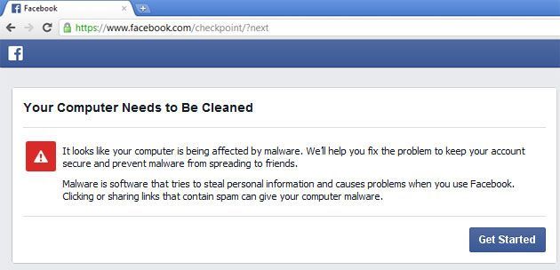 Lo strumento di sicurezza è già attivo. Ecco un esempio del messaggio che Facebook mostra all’utente in caso di sospetta infezione: