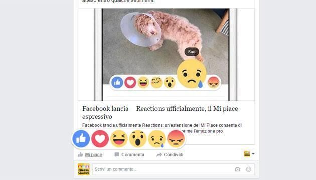 A partire da Venerdì 9 ottobre, il social network ha iniziato a testare uno strumento per approfondire il classico ‘Mi piace’ che gli utenti cliccano sui contenuti del web e nei commenti sul social network. La funzione soprannominata "Reactions" o "Reazioni" in italiano oltre al simbolo del ‘pollice in su’ va ad aggiungere ulteriori sei simboli per sei differenti emozioni per esprimere pareri su status e commenti di Facebook. Questi nuovi simboli rappresentano: amore, risata, felicità, shock, tristezza e rabbia.