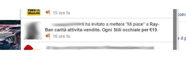 Come riconoscerlo. Sono ormai tre anni che si presenta e non sembra avere una fine: c’è chi riceve una notifica da parte dell’amico che invita a mettere il proprio Mi Piace a "Ray-Ban carità attivita-vendite. Ogni Stili occhiale per 19 euro" che solo per l’italiano con cui è scritto dovrebbe far pensare prima di cliccare, oppure c’è chi vede sulla bacheca di qualche amico l’evento "L’attività di beneficenza dei Ray-Ban dell’Italia" organizzato da "L’istituzione di Ray Ban" oppure altri inviti simili. A tutti bisogna fare attenzione, anche solo a farci click: non fatelo.