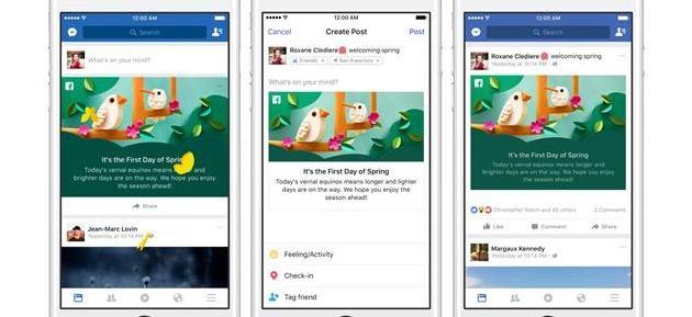 Gli utenti di Facebook nella giornata del 20 marzo 2017 vedranno aprendo l'app mobile uccellini colorati che celebrano l'arrivo della primavera con un'animazione di farfalle che volano.