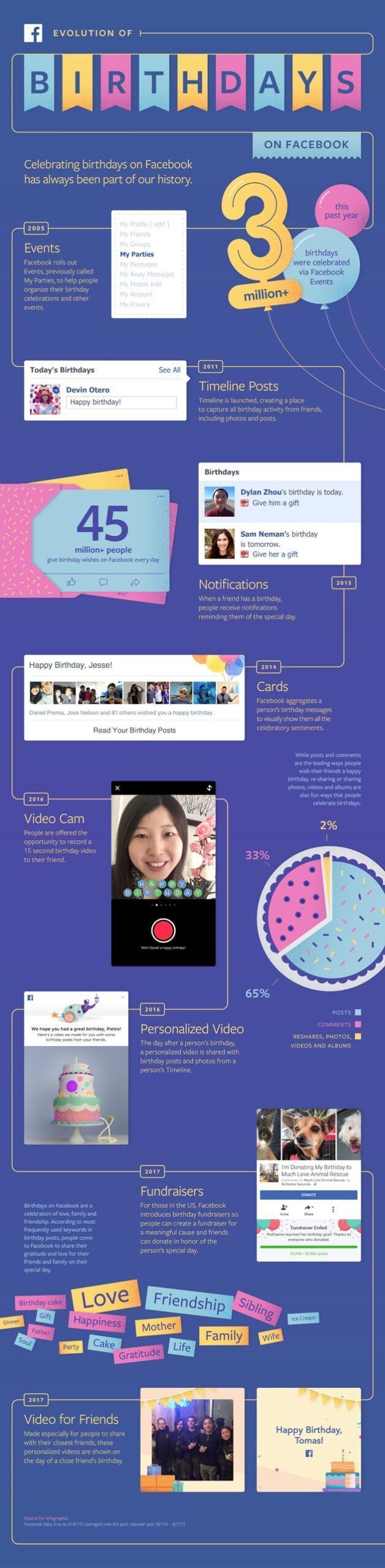 Infografica evoluzione auguri di compleanno su Facebook