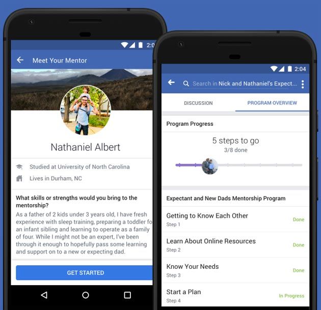Nel 2017, Facebook ha testato il ‘mentoring’ e, introducendolo ora nei Gruppi, le persone nelle comunità esistenti possono connettersi e ottenere supporto individuale attraverso un programma guidato. Il mentoring è disponibile per le persone in determinati gruppi focalizzati sullo sviluppo genitoriale, professionale e personale.