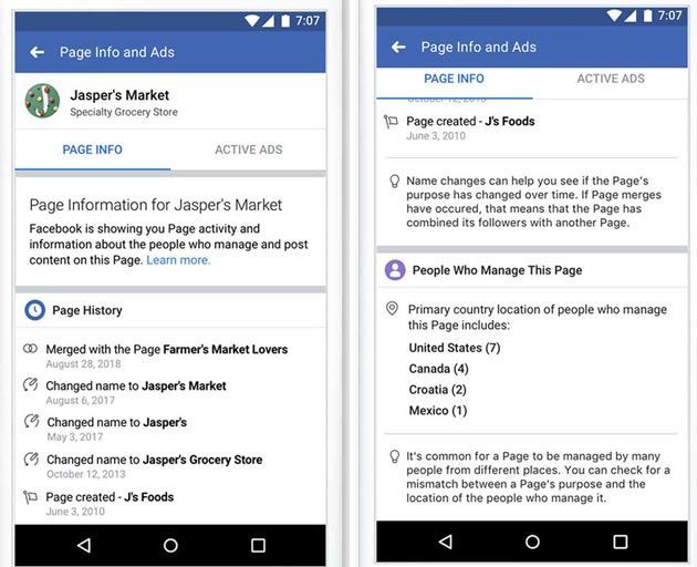 "Il nostro obiettivo è impedire a organizzazioni e individui di creare account che inducano in errore le persone su chi sono o cosa stanno facendo" si legge in un post sul blog di Facebook Business. "Questi aggiornamenti fanno parte dei nostri continui sforzi per aumentare l’autenticità e la trasparenza delle Pagine sulla nostra piattaforma."