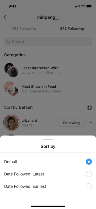 Instagram: come ordinare la lista delle persone seguite dalla meno recente alla piu’ recente, o viceversa