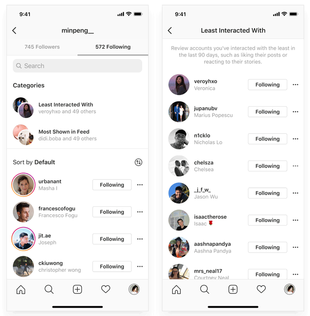Con l’obiettivo di avvicinare gli utenti alle persone a cui tengono di piu’ nel momento in cui usano l’app, indipendentemente da come nel tempo possono essere cambiati i loro interessi e le loro relazioni, Instagram consente ora di visualizzare e gestire in modo veloce e diretto la lista dei profili seguiti, organizzati per categoria, rappresentando al meglio connessioni e interessi attuali.
