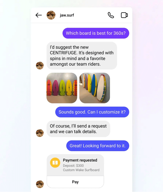 Instagram ha introdotto la possibilità di effettuare acquisti da piccole imprese direttamente nelle chat. Ora, nelle chat su Instagram con piccole imprese qualificate, è possibile porre domande, effettuare un acquisto e tracciare un ordine. Nello stesso thread, le aziende possono confermare gli acquisti, creare richieste di pagamento e riscuotere il pagamento.