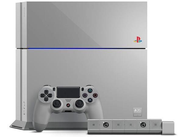 La versione speciale di PS4 per i 20 anni della console si basa sulla PS4, questa ridipinta dal suo color nero al color grigio. Non solo al console è stata colorata di grigio, ma anche il controller, e il tutto viene offerto in una scatola speciale.