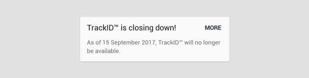 Sony ha deciso di terminare il 15 settembre 2017 il suo servizio TrackID di identificazione della musica.