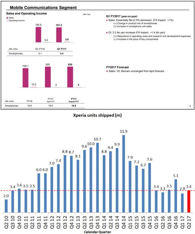I ricavi di Sony Mobile di 181 miliardi di yen sono scesi del 3%, calo che Sony attribuisce ad una modifica dell’insieme dei suoi prodotti. Tuttavia, nonostante il calo delle vendite, il reddito operativo è salito a 3,6 miliardi di yen. Questo viene attribuito ai minori costi operativi e ai costi di ricerca e sviluppo, contribuendo a compensare gli aumenti dei prezzi dei componenti.