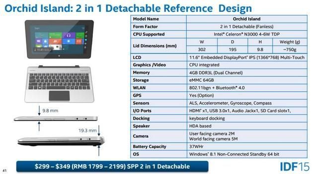 All’IDF 2015 di Shenzhen, il reference design è stato svelato in via ufficiale ai giornalisti del settore: si nota subito un design molto simile a diversi ibridi già commercializzati sul mercato mondiale, come l’ASUS Transformer Book T100 o l’Acer Aspire Switch 10.