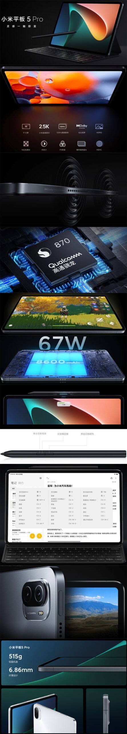 Sulla scia dell’annuncio dello smartphone Mix 4 con camera under-display, Xiaomi ha annunciato la serie di tablet Pad 5, composta dai modelli Xiaomi Mi Pad 5 (anche chiamato Mi Pad 5 Lite) e Xiaomi Mi Pad 5 Pro, con quest’ultimo disponibile anche nella variante 5G con connettività mobile. Tutta questa serie è compatibile stilo e tastiera a supporto magnetico venduti separatamente da Xiaomi (non sono forniti nella dotazione di vendita).