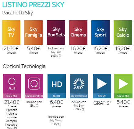 – Cliente Sky via fibra/satellite con pack Calcio e Sky Go: 36,80 euro/mese* per le 7 partite/turno di Sky su Sky Go**.