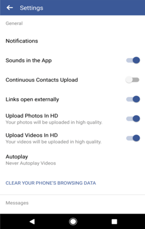 Per abilitare il caricamento dallo smartphone di video in HD su Facebook bisogna avere abilitata l’opzione "Carica video in HD" che si puo’ trovare all’interno delle Impostazioni dell’app Facebook. Se l’opzione è selezionata (quindi l’interruttore è spostato verso destra, quindi è di colore blu) allora i video che si caricheranno saranno in HD. Sempre da questa pagina delle impostazioni si puo’ disattivare la voce suddetta per continuare a caricare video in SD (con un conseguente risparmio di dati consumati per l’upload).