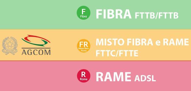 Il 13 luglio 2018, il Consiglio dell’Autorità per le Garanzie nelle Comunicazioni ha approvato il provvedimento che definisce le modalità con cui le imprese dovranno comunicare le caratteristiche delle diverse tipologie di infrastruttura fisica utilizzate per l’erogazione dei servizi di connettività, come stabilito dal decreto legge n.148 del 16 ottobre 2017. In conseguenza a questo provvedimento, gli operatori telefonici hanno iniziato ad usare i bollini VERDE ‘F’, GIALLO ‘FR’ e ROSSO ‘R’ per identificare la tecnologia della connessione associata alle proprie offerte.