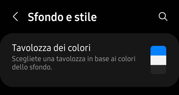 aprire ‘Impostazioni’ > premere su ‘Sfondo e stile’ > premere su ‘Tavolozza dei colori’