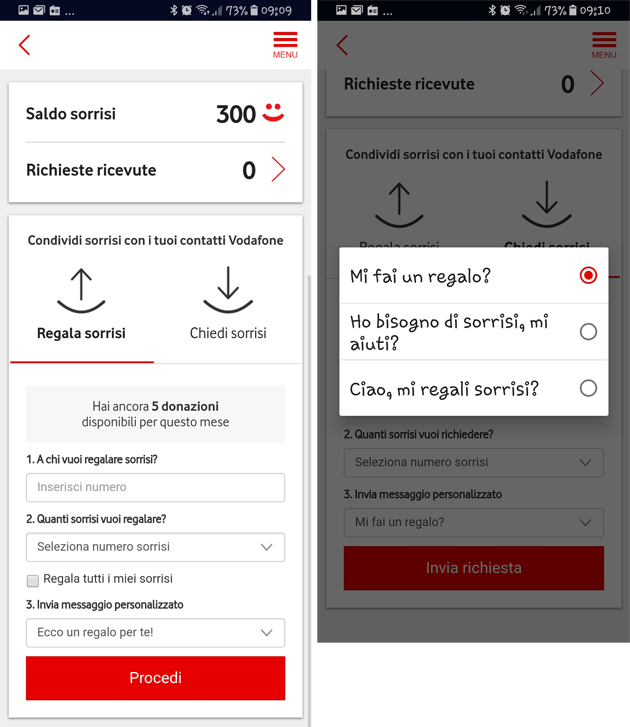 Come richiedere sorrisi con Vodafone Happy Sharing