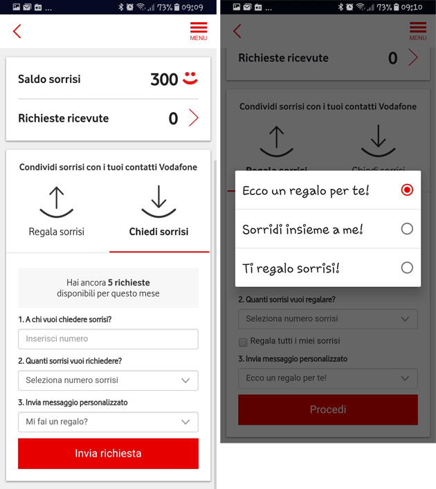 Come richiedere punti/sorrisi con Vodafone Happy Sharing