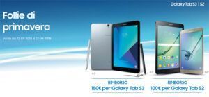 Follie di primavera Samsung: acquistando Galaxy Tab S3 o Tab S2 fino a 150 euro di rimborso