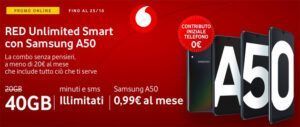 Samsung Galaxy A50 a meno di 20 euro al mese senza anticipo con Vodafone RED Unlimited Smart (ultimo giorno)