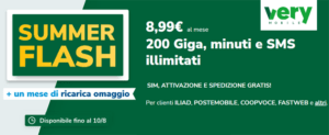 Very Mobile Summer Flash offre 200 Giga, minuti e SMS illimitati a 8,99 euro al mese (scadenza prorogata)
