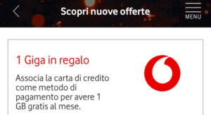 Vodafone regala 1 Giga a chi associa la carta di credito come metodo di pagamento