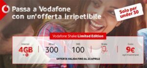 Vodafone Shake Limited Edition: 300 minuti, 100 SMS, 4GB a 9 euro [fino al 23 aprile]